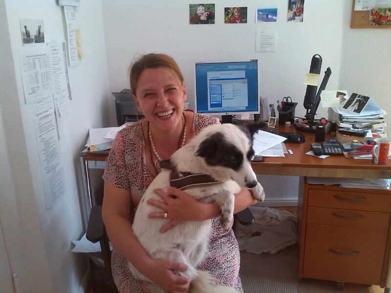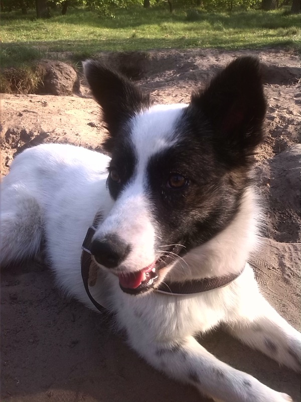 Sie hat in der Zwischenzeit eine große Menge an Raufkumpels, Renn- und Tobe-Freundinnen und Knabberfreunde auf den Wiesen, Parks, Hundeauslaufgebieten…hier im Kiez. Wir kommen endlich wieder viiieeel raus, und auf der Arbeit macht sie sich auch spitzenmäßig (…meist jedenfalls ;-)….). Wir haben sogar schon 10 Min. Alleinzeit eingeübt, was toll klappt.