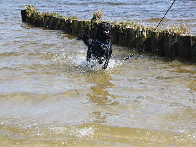 Neben seinen Hundekumpels und der Leidenschaft fürs Fressen, hat er auch noch ein anderes Hobby; Das Schwimmen und Planschen im See/Meer/Pfütze oder Tümpel…da ist er wirklich ganz Labrador!