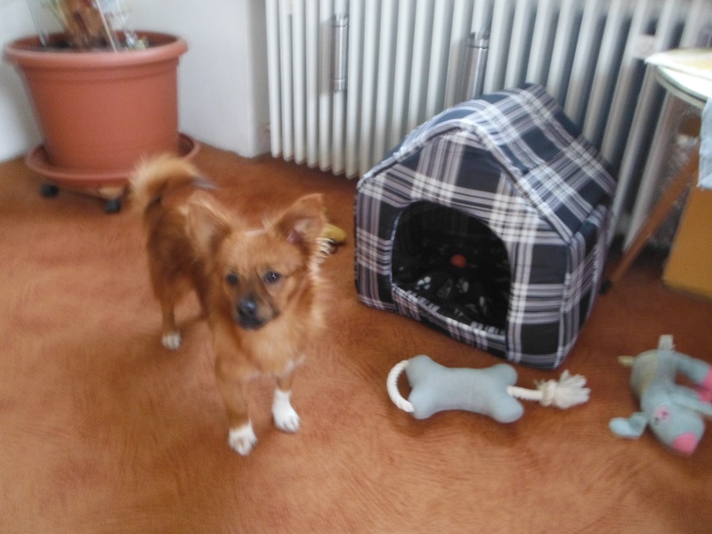 Sie schläft nachts in ihrem Häuschen. Den Garten haben wir auch schon gesichert, sodas sie frei toben kann."