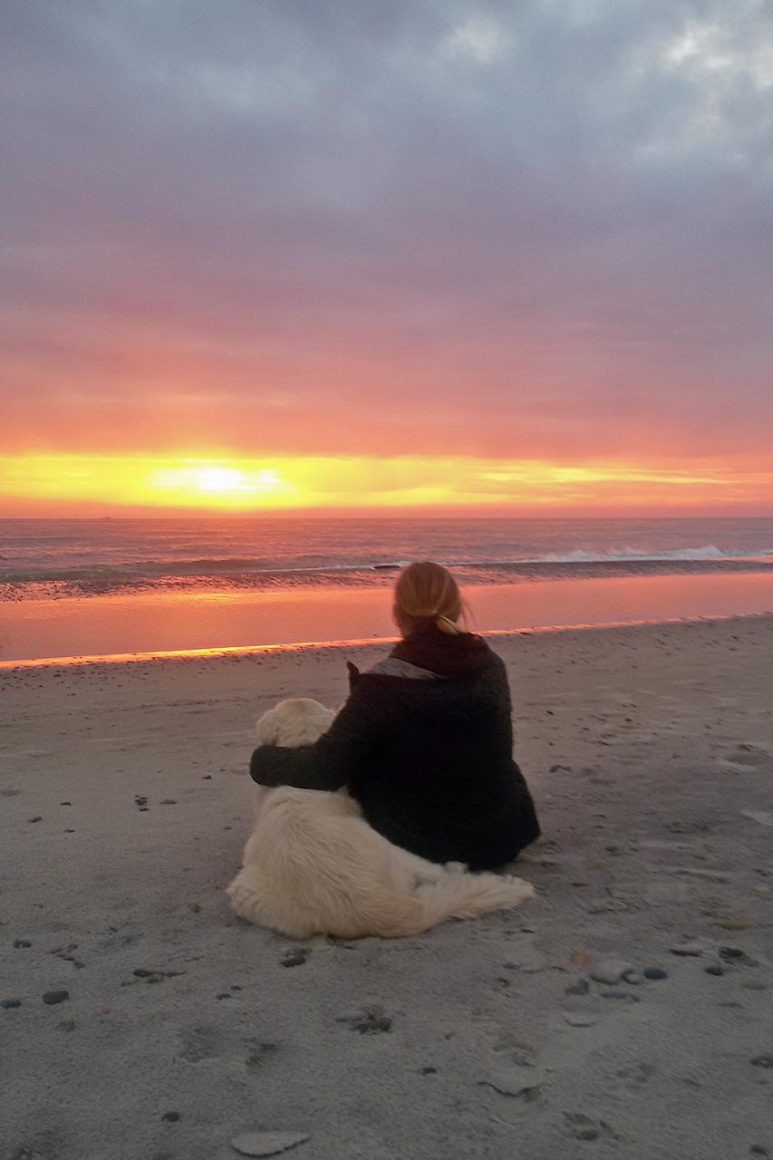 "Liebes Team von Verlorenwasser!Hier kommen ein paar sommerliche Grüße von Buddy!! Wir waren gerade in Dänemark im Urlaub, es war toll, Buddy fühlt sich dort sehr wohl. Die Temperaturen kommen ihm entgegen (18Grad) und Haus mit Garten OHNE Treppen ist natürlich herrlich. Buddy ist jetzt 12,5 Jahre alt!! Er ist sehr gemütlich geworden, schläft viel und lässt sich bekuscheln. Die drei Stockwerke schaffen wir mit einer Tragehilfe, das klappt gut. Sonst spaziert er sehr gemütlich durch seinen Kiez. Wir freuen uns jeden Tag über diesen Hund, seit fast 4 Jahren ist er jetzt bei uns. Viele Grüße an alle und im Anhang ein paar aktuelle Fotos.