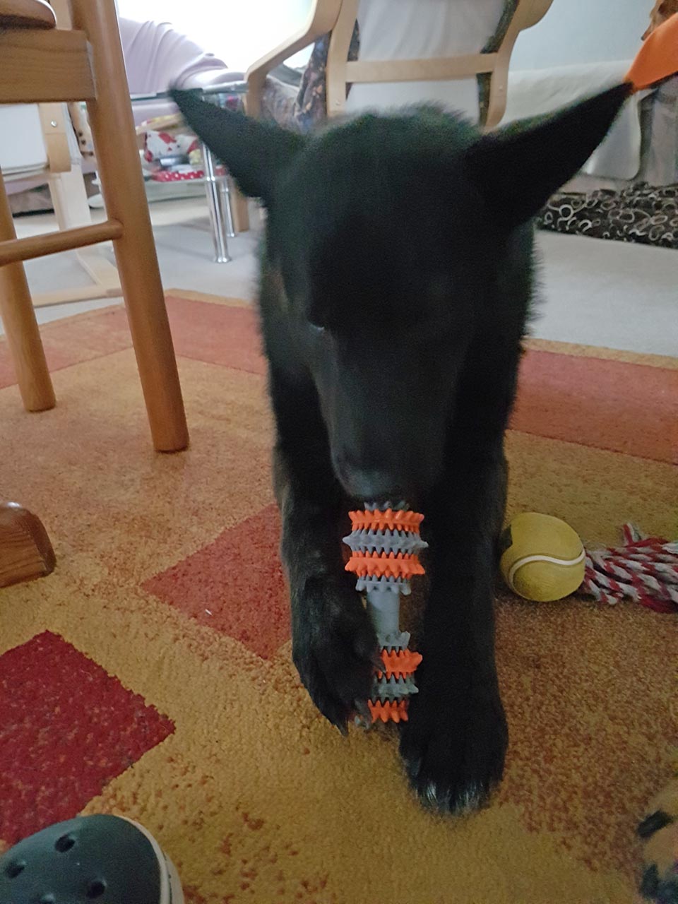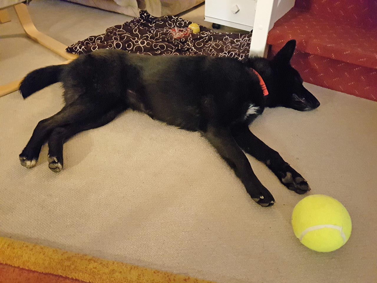 Sie hat auch schon 2x mit Betty von unseren Nachbarn gespielt. Gestern Nachmittag sind die beiden so schnell über die Wiese getobt, dass ich kein Foto davon machen konnte. Dafür hätte ich eine Hochgeschwindigkeitskamera gebraucht. Basti blüht auf und tobt immer ein bisschen mit.