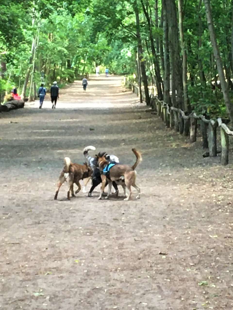 Oftmals sind wir mit noch einem Frauchen/Rüdengespann unterwegs, welcher nicht kastriert‼️ ist. Hier gab es anfänglich auch mal eine richtige Rauferei, aber inzwischen läuft es super mit uns.