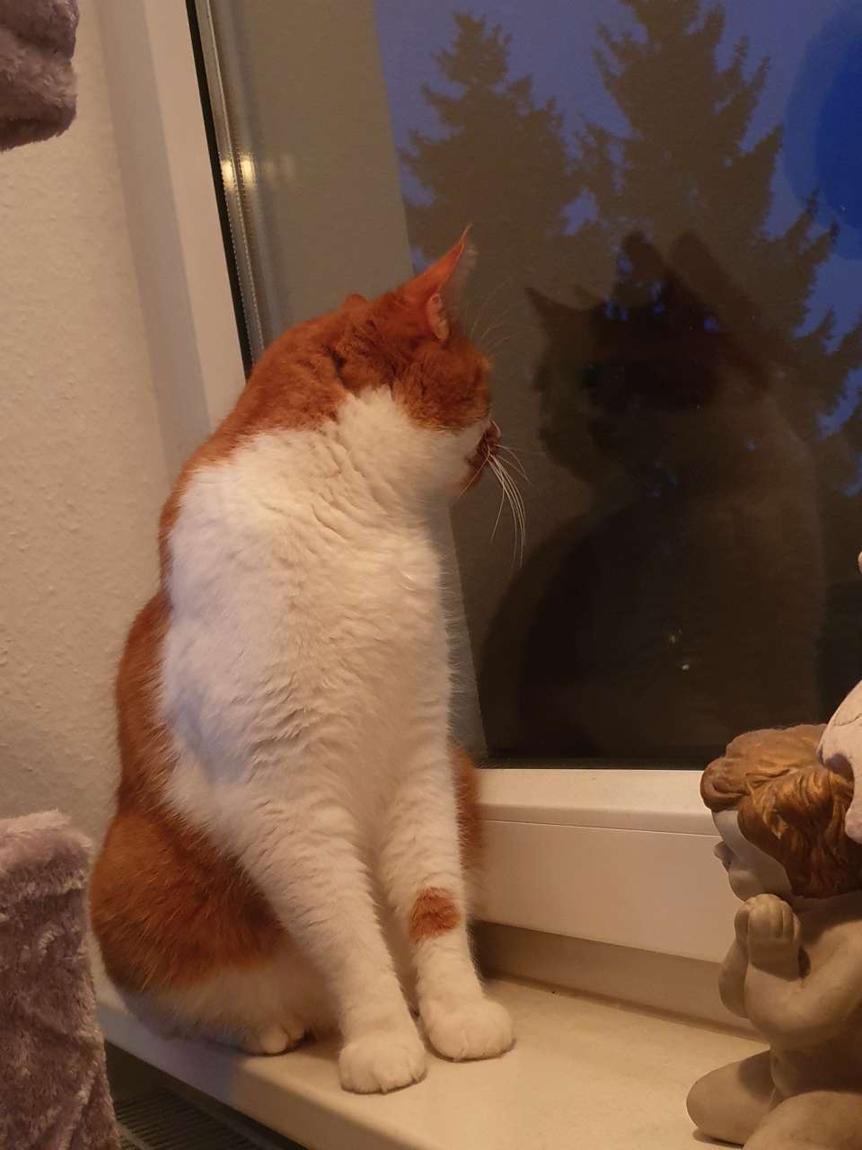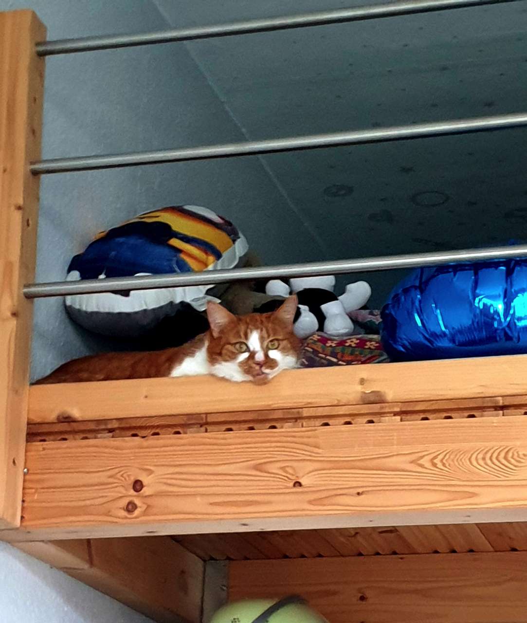 Ansonsten schläft er am Tag sehr viel. Am liebsten auf dem Hochbett von meinem Sohn, sein neues Reich ☺.