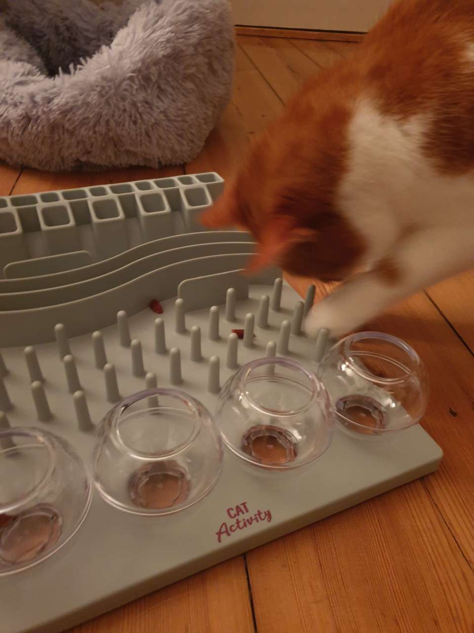 Leckerlies aus dem Geschicklichkeitsbrett angeln macht ihm auch mega Spaß.