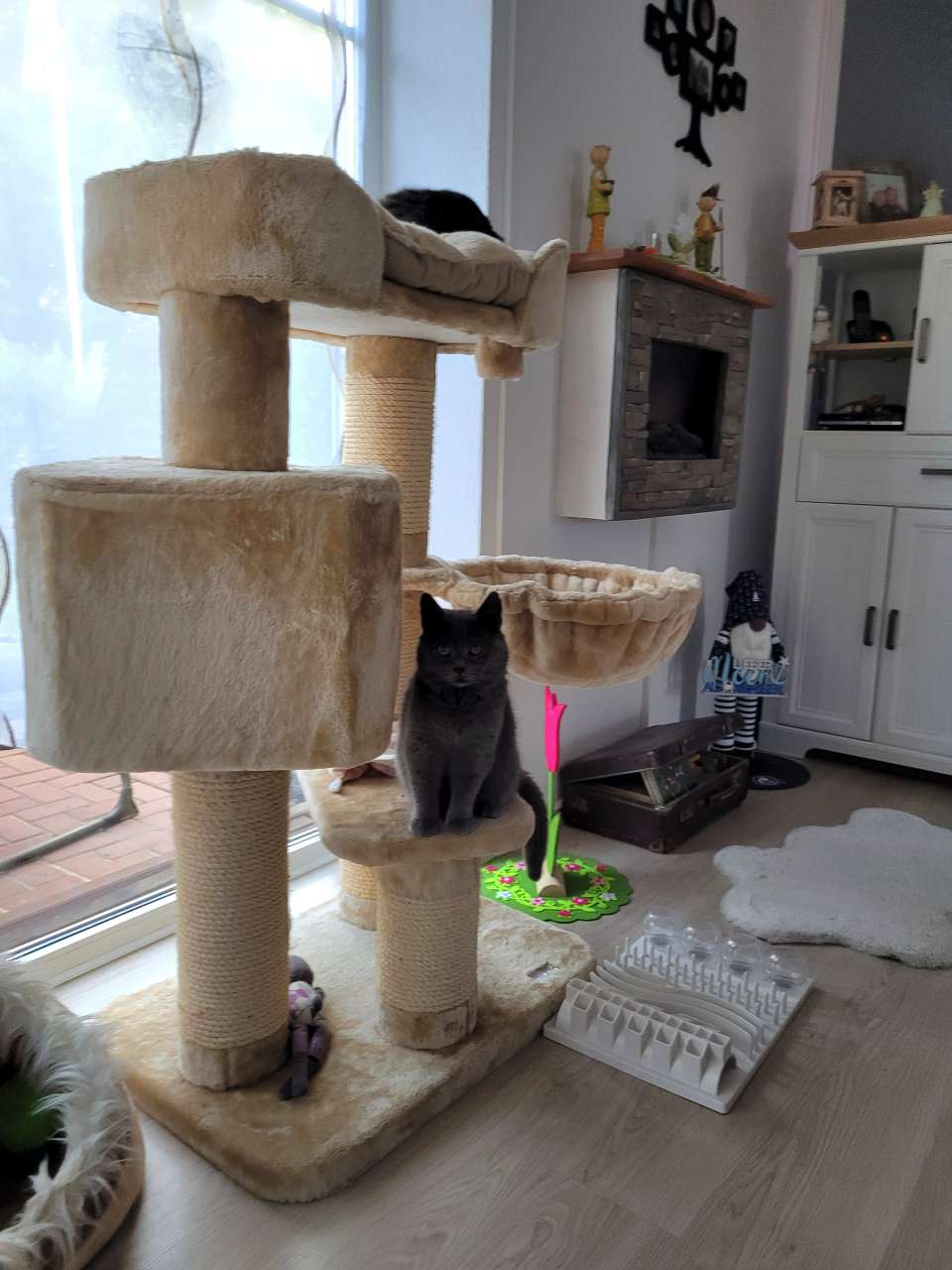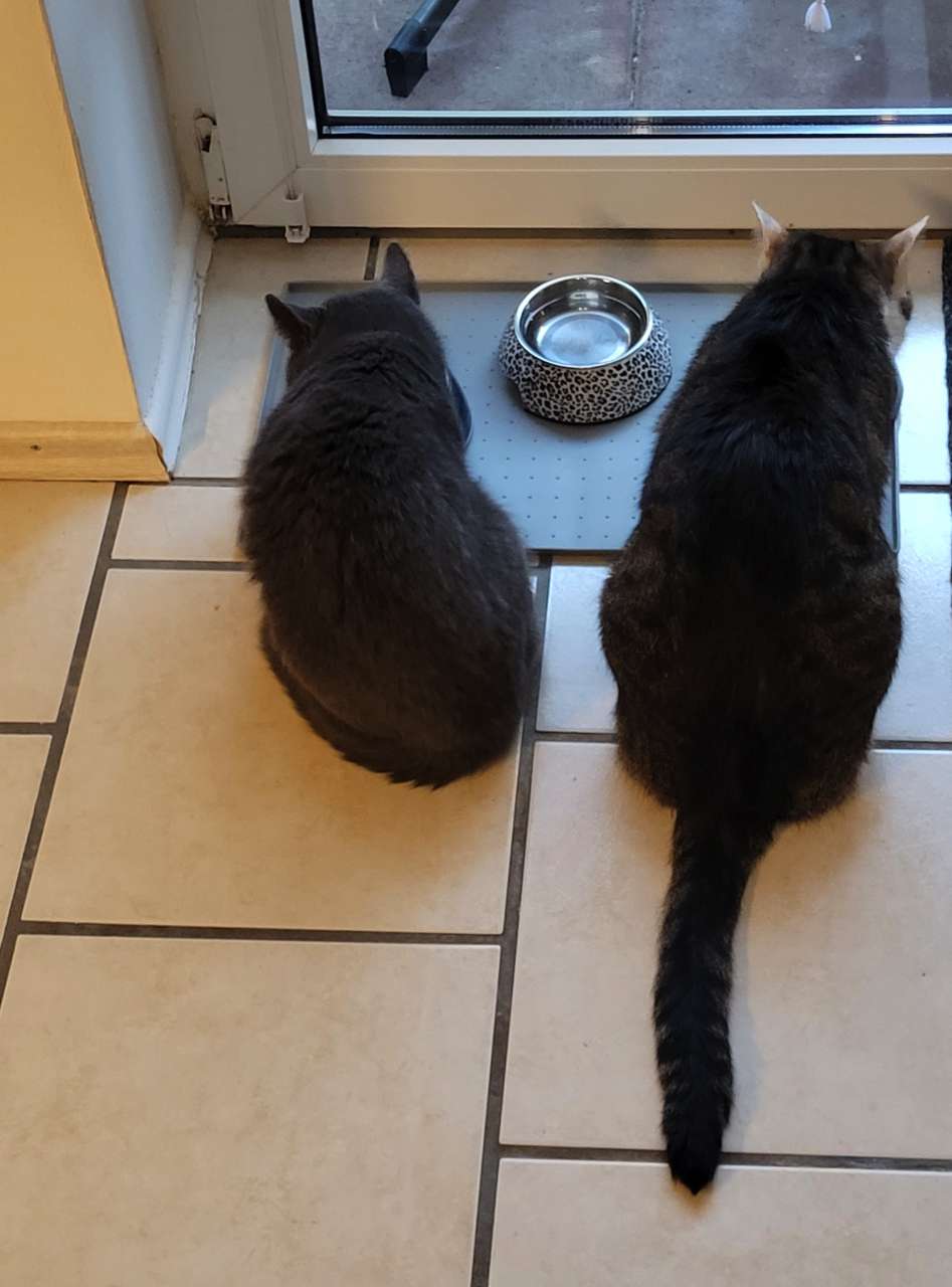 Aber jetzt fressen sie nebeneinander, Moritz versucht ihn zum Spiel zu animieren, er lässt sich gern streicheln und schnurrt auch. Selbst auf den Schoß können wir Moritz nehmen und er kuschelt dann. Faszinierend findet er aber nach wie vor den Fernseher 📺.
