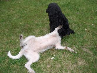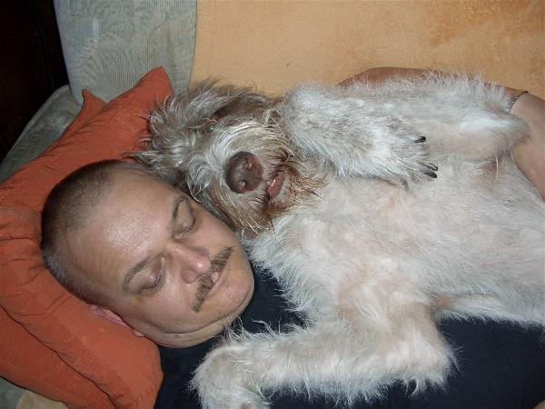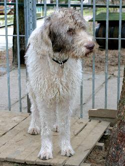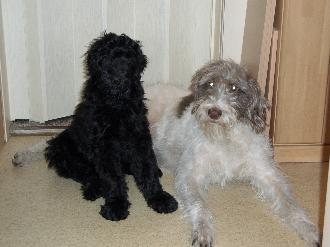 Einige Wochen später ruft weinend ein Mann an. Wir sollen seine beiden Hunde aufnehmen. Er hätte kein Geld - käme aus der Psychiatrie - seine Frau hätte ihn verlassen - er müsse die Wohnung räumen - usw. Wir fahren hin. Er übergibt uns zwei Hunde: Mutter und Tochter. Er erzählt uns, die anderen Welpen seien erschlagen worden. Ja, so etwas dachten wir uns schon. Wir laden die Tiere ins Auto.