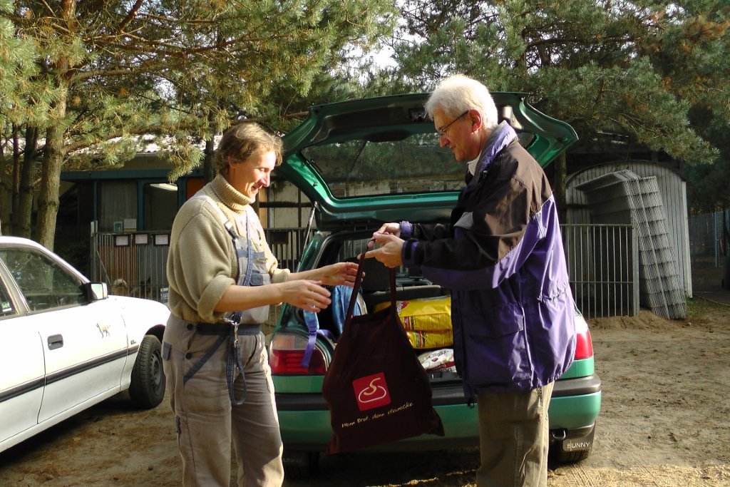 Tim und Anke kamen zu Besuch und brachten ein großes Auto voller Hundefutter mit.
