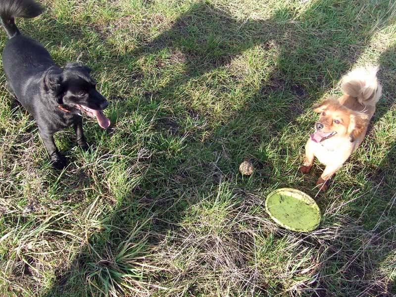 Die ersten Sonnenstrahlen haben wir aber auch schon ausgenutzt wie man auf den Bildern sehen kann. Teddy hat das Frisbee spielen für sich entdeckt und Amigo liebt seinen Ball.