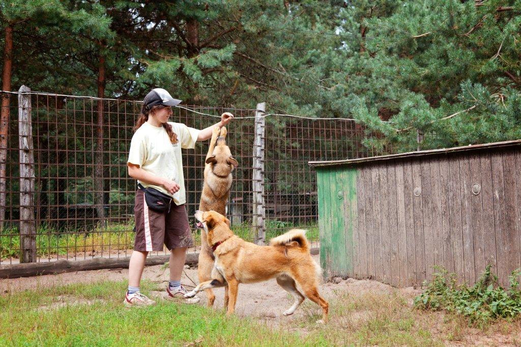 Sheppy und Siralda genießen eine Extra-Spielstunde mit Tierpflegerin Doreen.