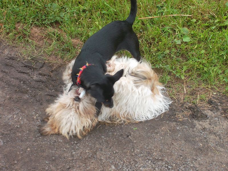 so nun senden wir mal ein paar Fotos von Paris in ihrem neuen Heim. Sie hat sich prima eingelebt und alles super im "Griff". Vor den ganz grossen Vierbeinern hat sie noch den nötigen Respekt, aber das ist ja auch ganz gut. Ansonsten wird mit allem getobt - egal ob Dobermann oder Malteserverschnitt.