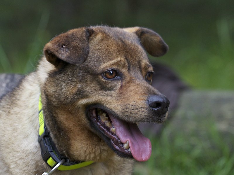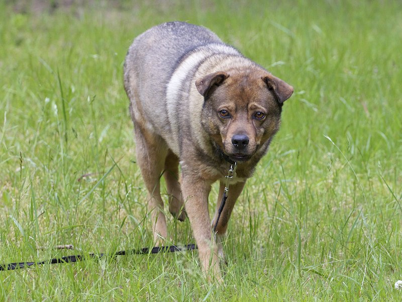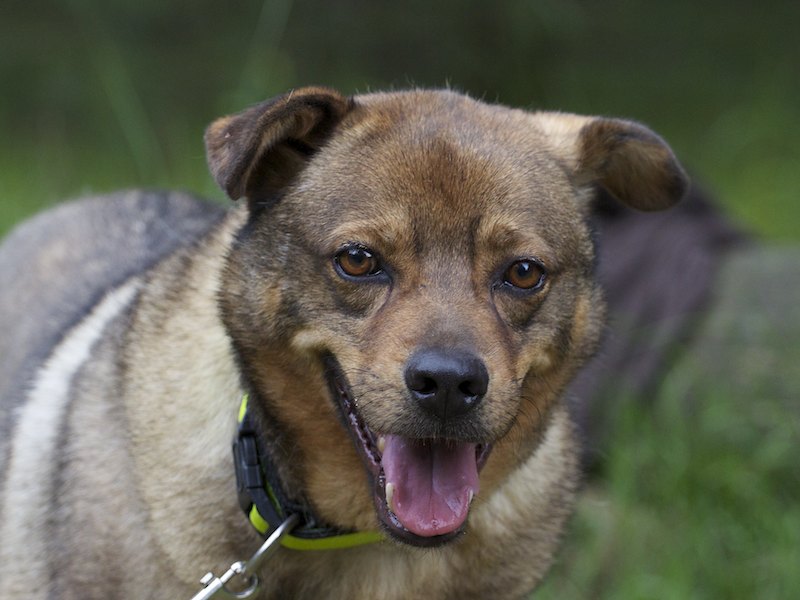 Er ist ein lieber und freundlicher Hund, der gern schmust.