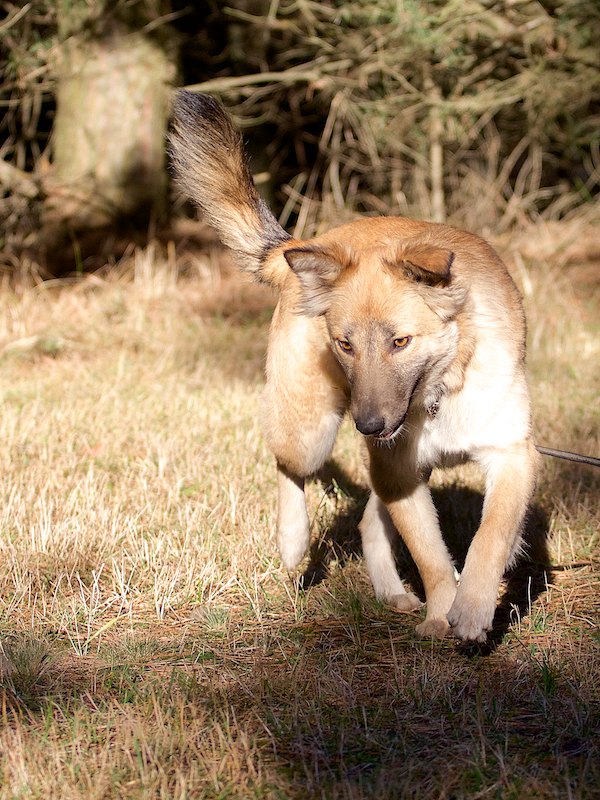 Sie braucht eine ebenerdige Wohnung, denn sie muss in ihrer Jugend eine unbehandelte Verletzung gehabt haben, bei der ein Vorderbeinchen etwas schief zusammengewachsen ist. Vielleicht wurde sie auch falsch behandelt. Sie läuft gut und es fällt dabei nicht weiter auf. Aber in einem Ellenbogen hat sich dadurch Arthrose entwickelt und sie nimmt mitunter eine Schonhaltung ein. Nach dem Toben ruht sie deshalb wieder ganz gern.