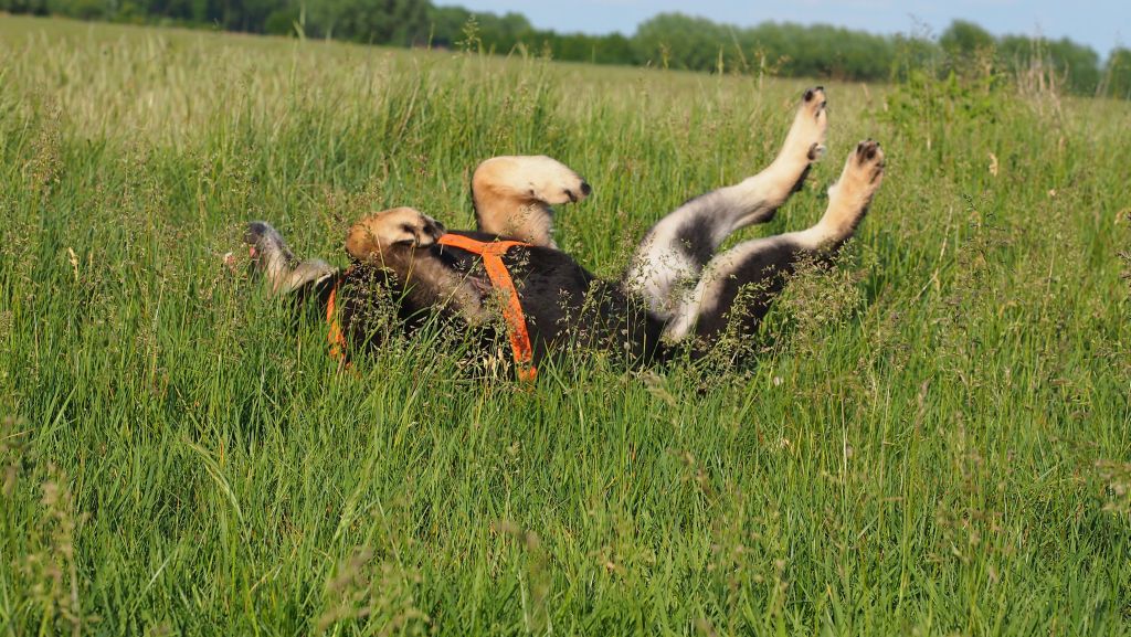 Viel Bewegung half, den kaum bemuskelten Hund wieder auf die Beine zu bekommen und ihm die Gangsicherheit zu verleihen, die angesichts der schweren Beeinträchtigungen noch möglich war. Sie hat sie bis fast zuletzt behalten und ist noch vor drei Wochen über die weiten Felder Masurens gewandert.